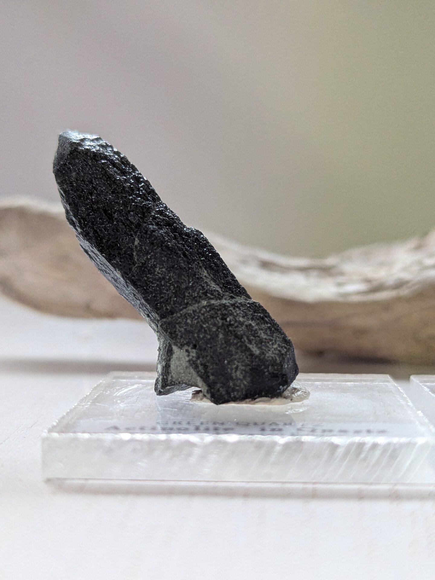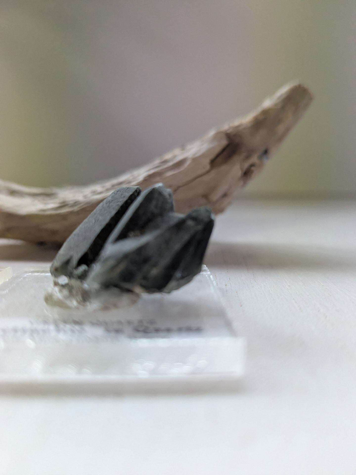 アクチノライトがびっしりで黒と見紛うばかりの深緑の水晶です。器(身体)と魂、アストラル体エーテル体、他をぴったり今ここにセットアップしてくれる感じです。
