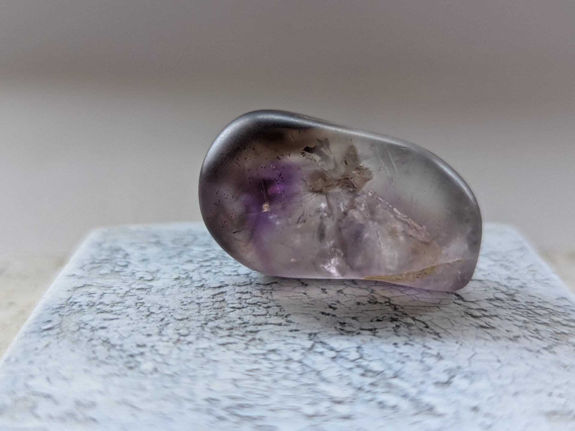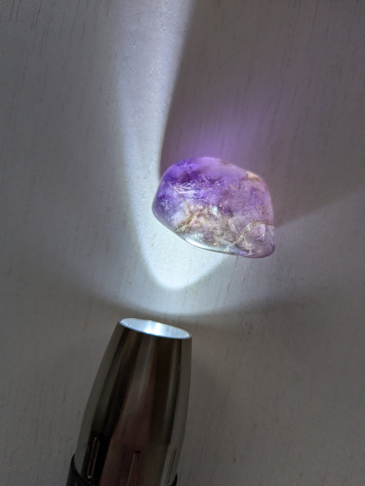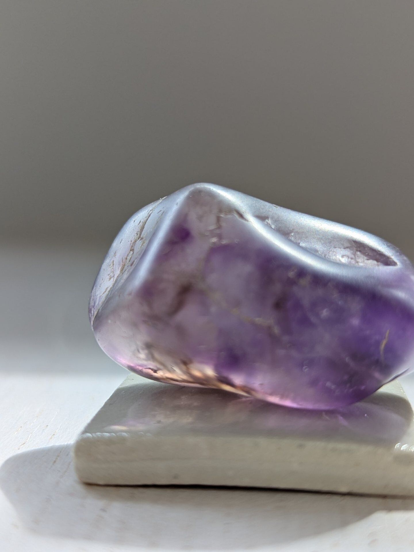 コンゴ産のアメシスト、ネットの海で見かけた時アメシストなのに野太く仕上がってるなぁ!安心感ある地に足ついたアメシストだなぁ!しかしクラスターじゃなくてお手軽に実物体験したいと思っておりましたら、後日別の卸セラーさん持ってたの発見!一番握りやすいタンブルお迎えさせて頂きましてのご紹介