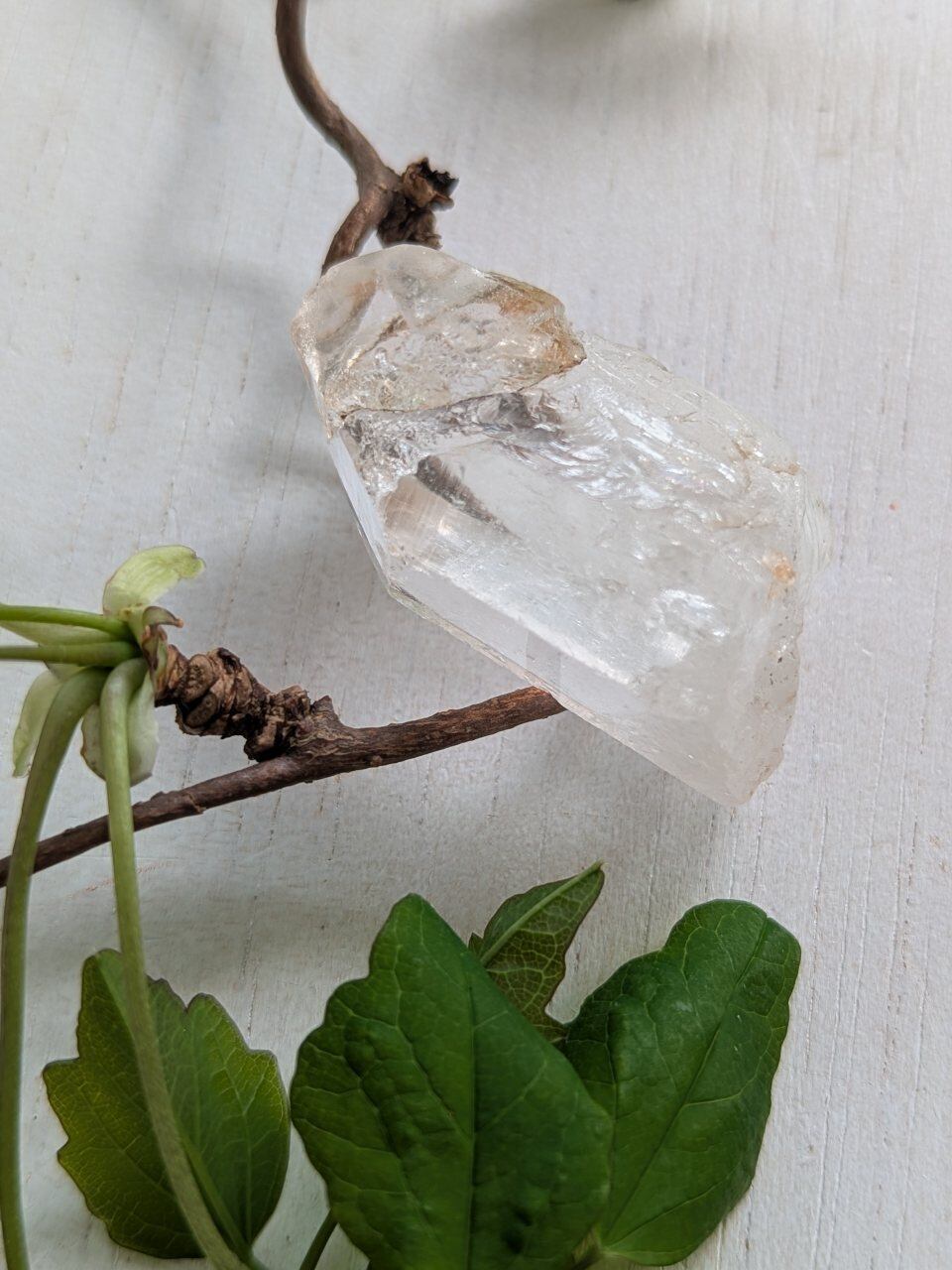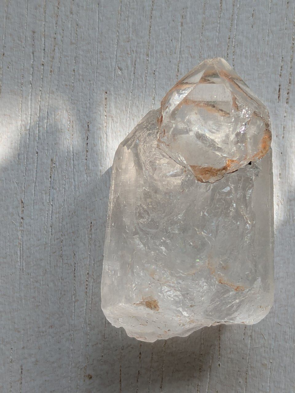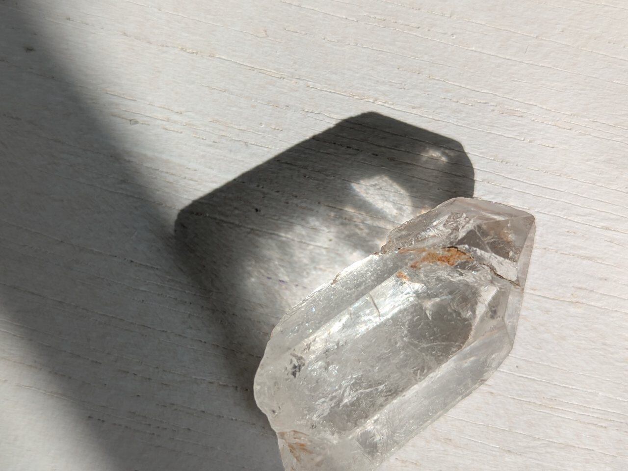 前側は透明感もあり、割れているように見えるトップ部分は一度成長が止まりまた成長がはじまっていて、良く見ると2結晶であることがわかりますよ!と卸元さん。USAで店構えて採取も行っているセラーさんから仕入れました。
