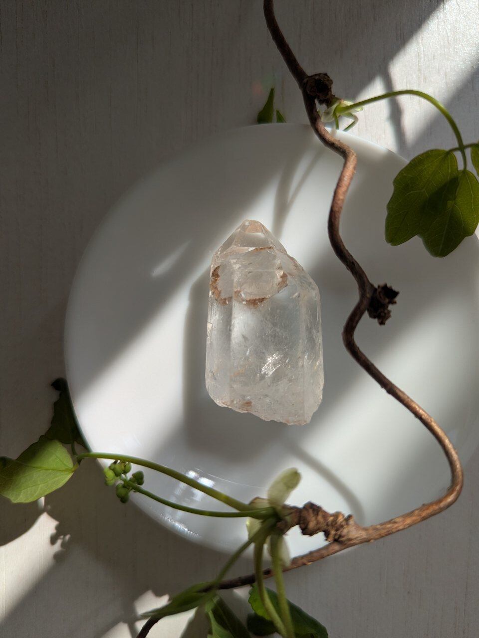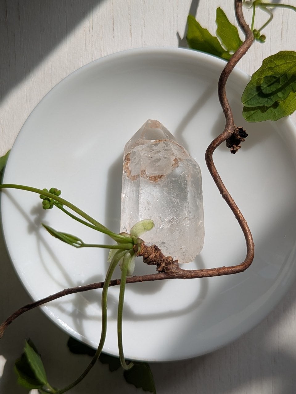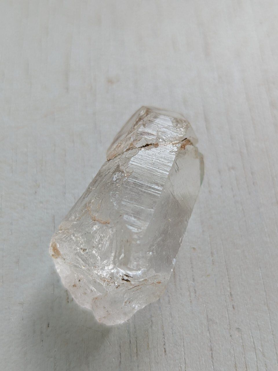 前側は透明感もあり、割れているように見えるトップ部分は一度成長が止まりまた成長がはじまっていて、良く見ると2結晶であることがわかりますよ!と卸元さん。USAで店構えて採取も行っているセラーさんから仕入れました。