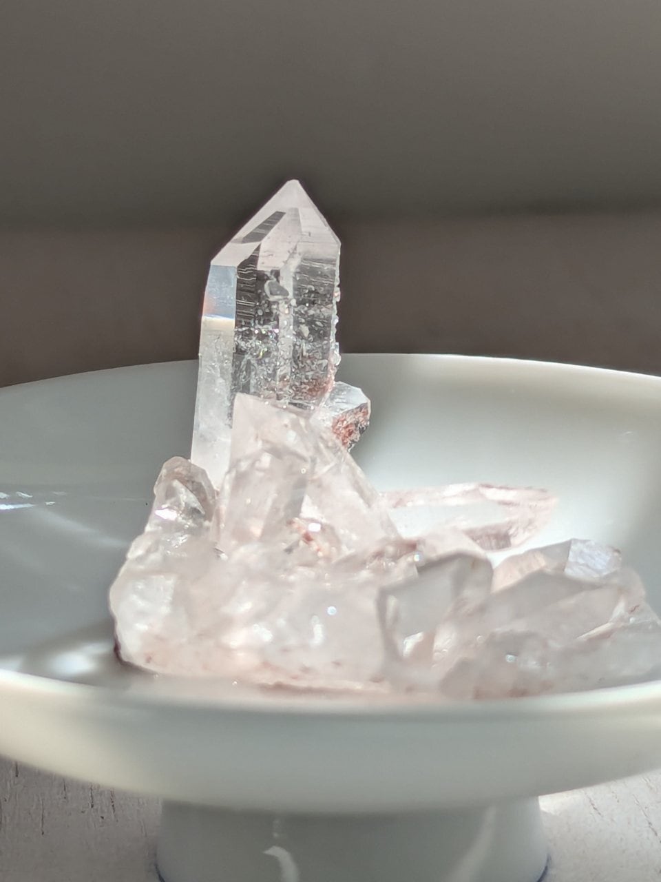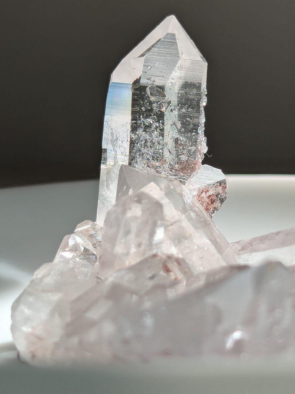 特筆すべきはこの透明度とほんのりとローズに染まる瑞々しい光のようなお姿、何年もかけて育った石ではあるものの、発見されて間もなくのこの方は新時代の産まれたての純粋な魂のような光の塊だなぁと惚れ惚れしちゃいます。おそばに飾って、煌めきの薫染いかがですか?