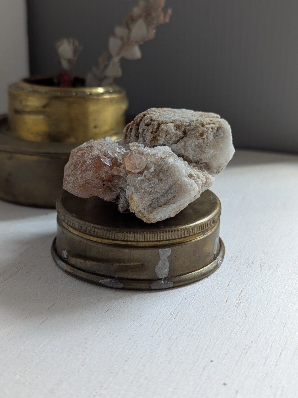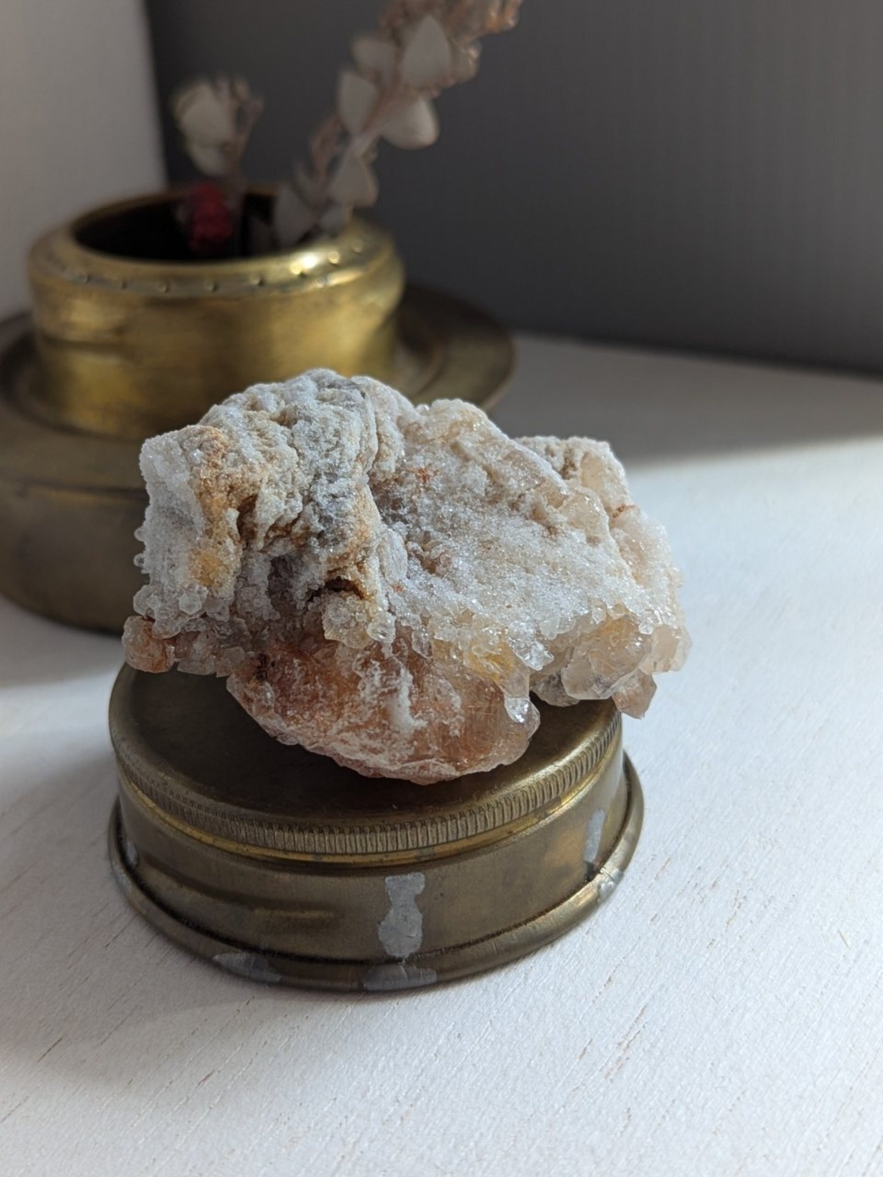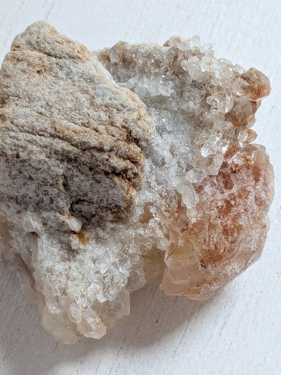 午後のひだまり、ルチル入りの手のひらサイズクラスターです。小さな結晶、母岩も白っぽく全体キラキラしております。可愛い陽だまりです♪