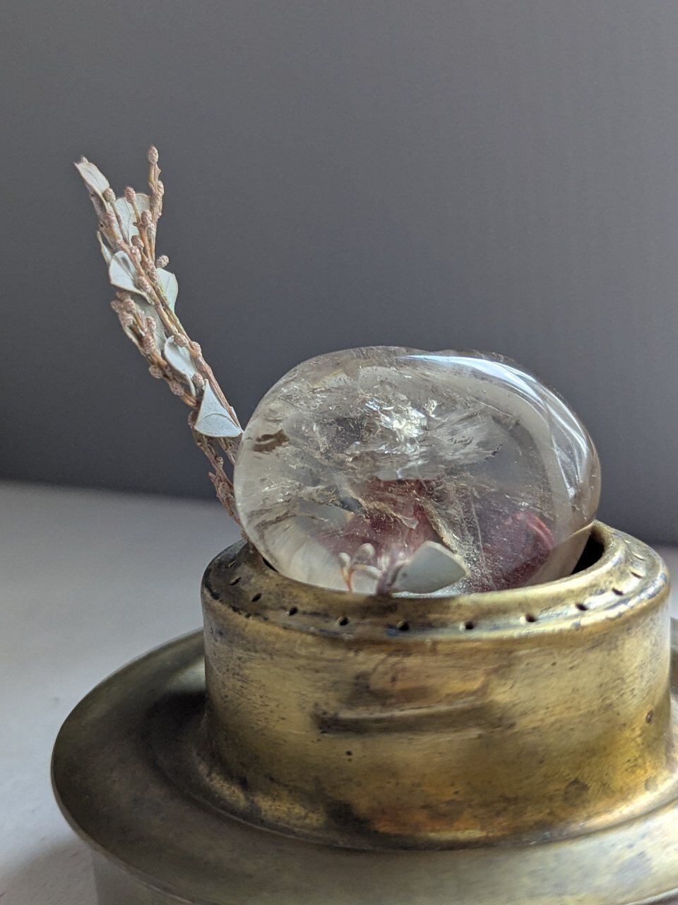 ぽってりとした、穏やかな水晶です。ハートの形も手作業感がある憎めない形です。