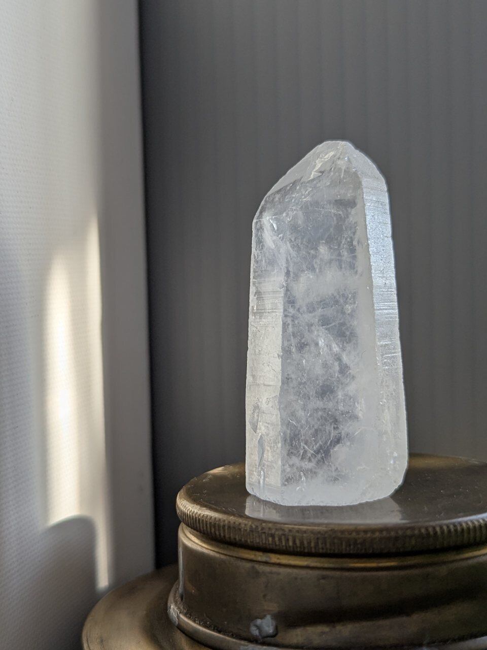 先端の面がツルツルしている1面(一部欠け)とマットな2面がありまして、柱面を持って親指をツルツル面に当てると自分の内側の魂の純粋なところと繋がります。