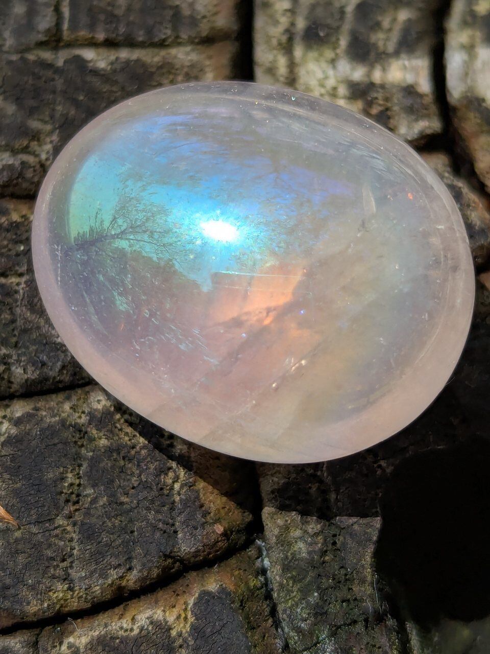 ローズクォーツオーラ、今まで色々とみて購入に至るものがなかったのですが、コレは!!と思い仕入れました。まずツルツルツヤツヤ、オーラも上品、光を通した時の中のクラックや景色がいい!エネルギーも穏やかさやさしさいっぱい!おすすめでございます(✷‿✷)