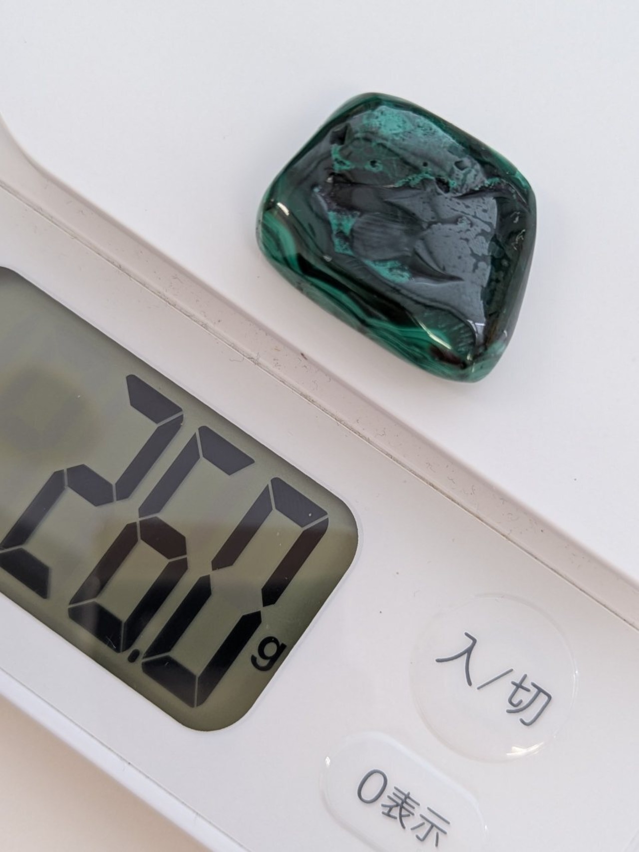 こちらのマラカイト、身体の変な力みや緊張をほぐして身体に静けさと穏やかさを取り戻すお手伝いが得意のようです。
