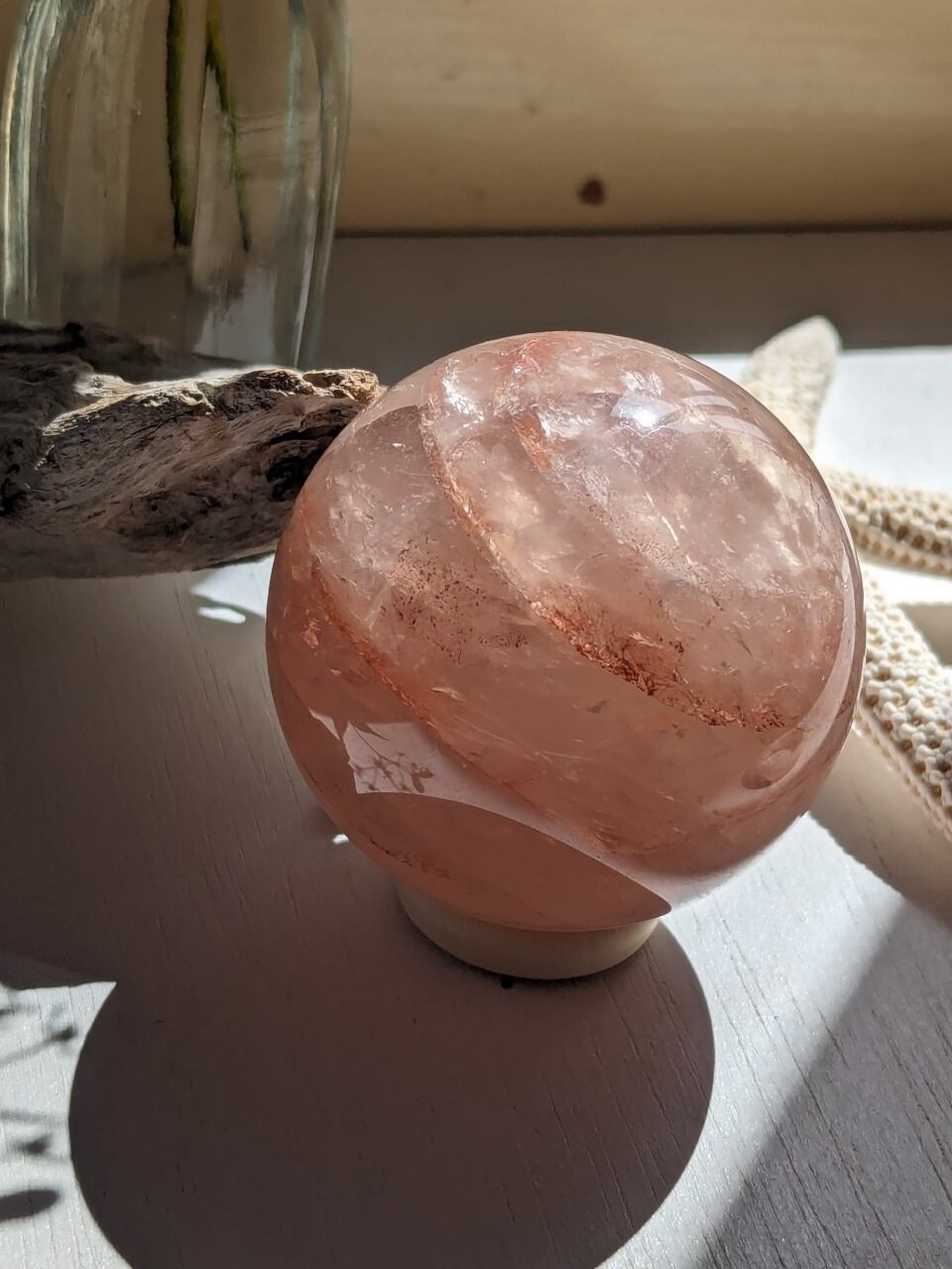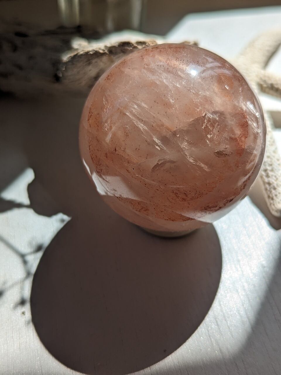 太陽光をあてるとヘマタイトの朱色味が華やかに開きます