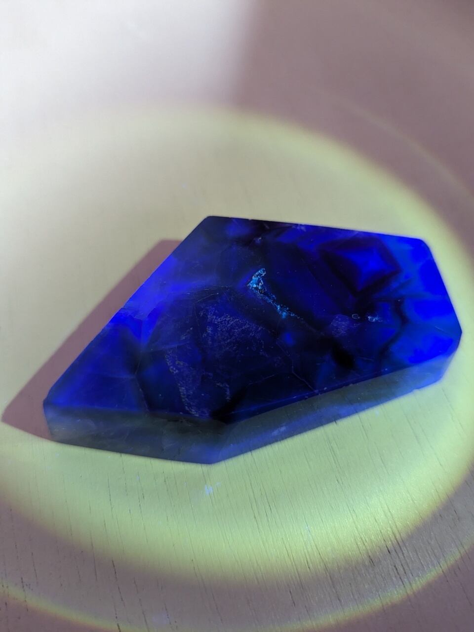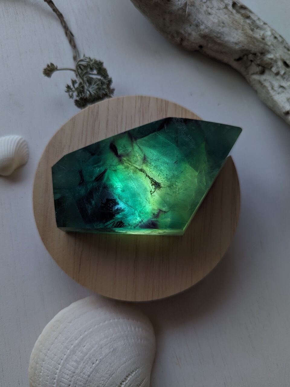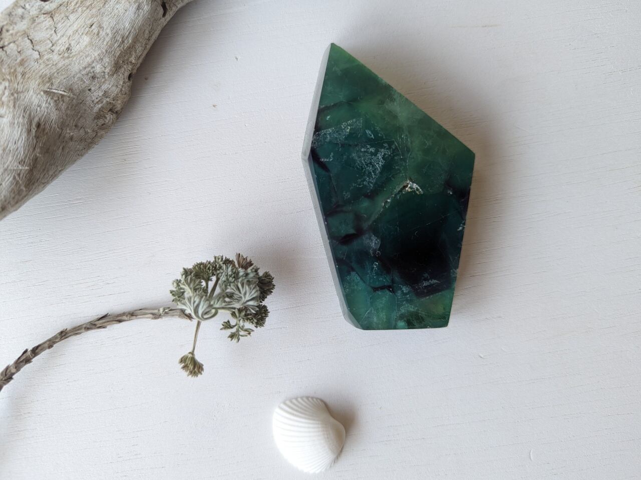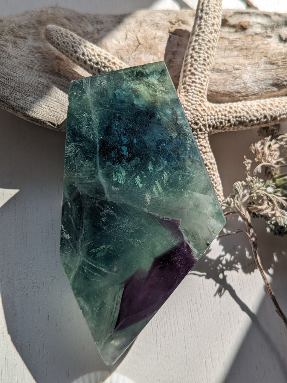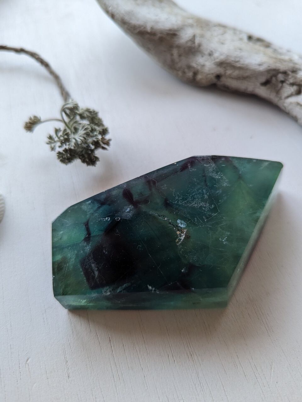 ひし形の模様、多色性の方です。エネルギーもしっかり安定感あるフローライト✨思考のゴミ的なモヤモヤを柔らかくしてゆるっと流してくれます